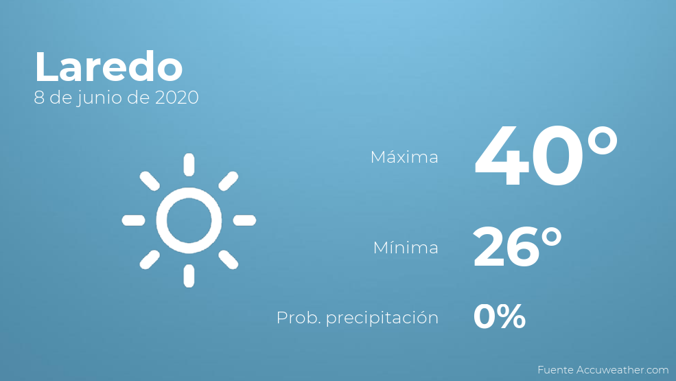 El clima para hoy en Laredo, 8 de junio de 2020