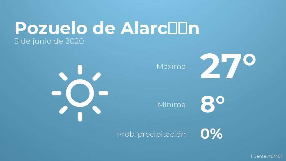 El clima para hoy en Pozuelo de Alarcón, 5 de junio de 2020