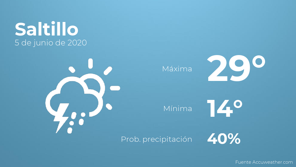 El clima para hoy en Saltillo, 5 de junio de 2020
