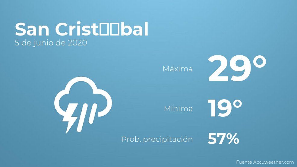 El clima para hoy en San Cristóbal, 5 de junio de 2020