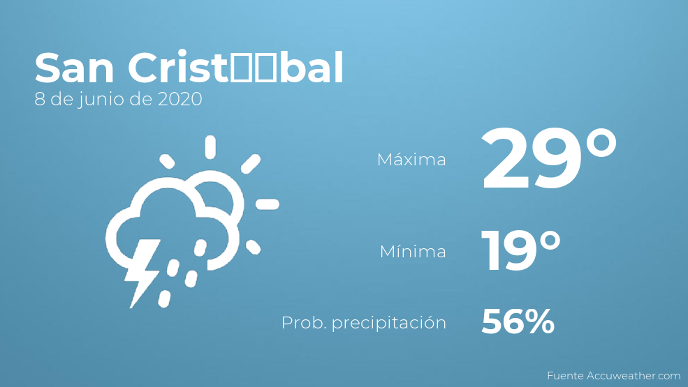 El clima para hoy en San Cristóbal, 8 de junio de 2020