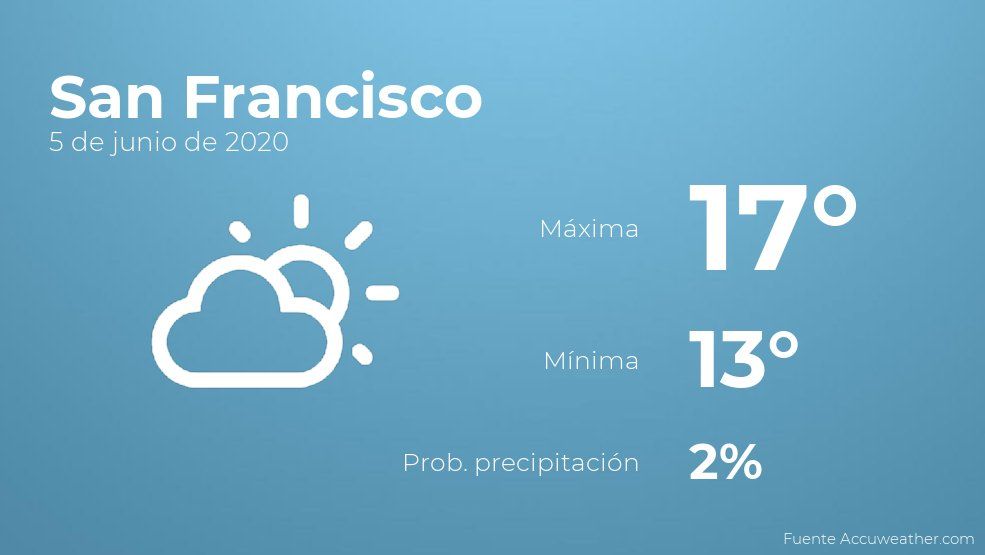 El clima para hoy en San Francisco, 5 de junio de 2020