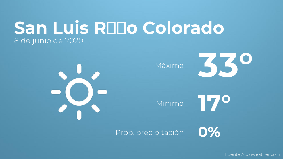 El clima para hoy en San Luis Río Colorado, 8 de junio de 2020