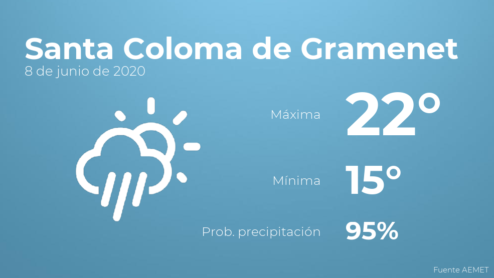 El clima para hoy en Santa Coloma de Gramenet, 8 de junio de 2020