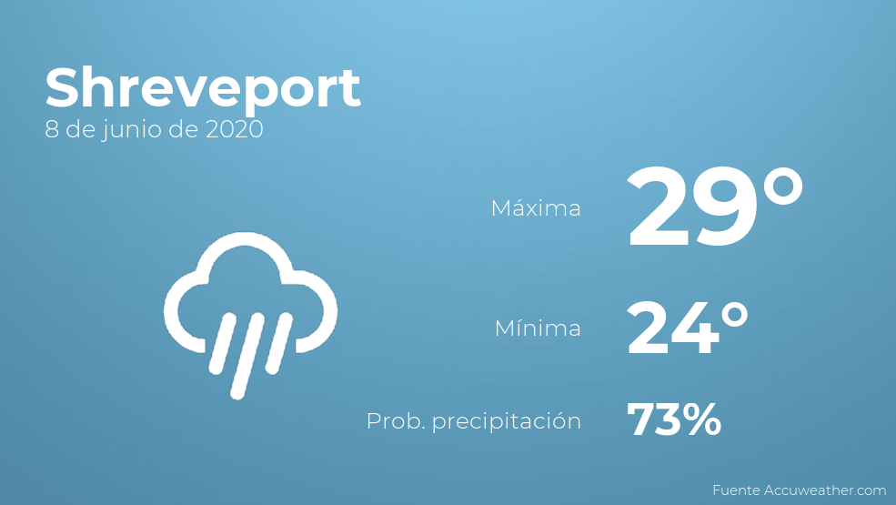 El clima para hoy en Shreveport, 8 de junio de 2020