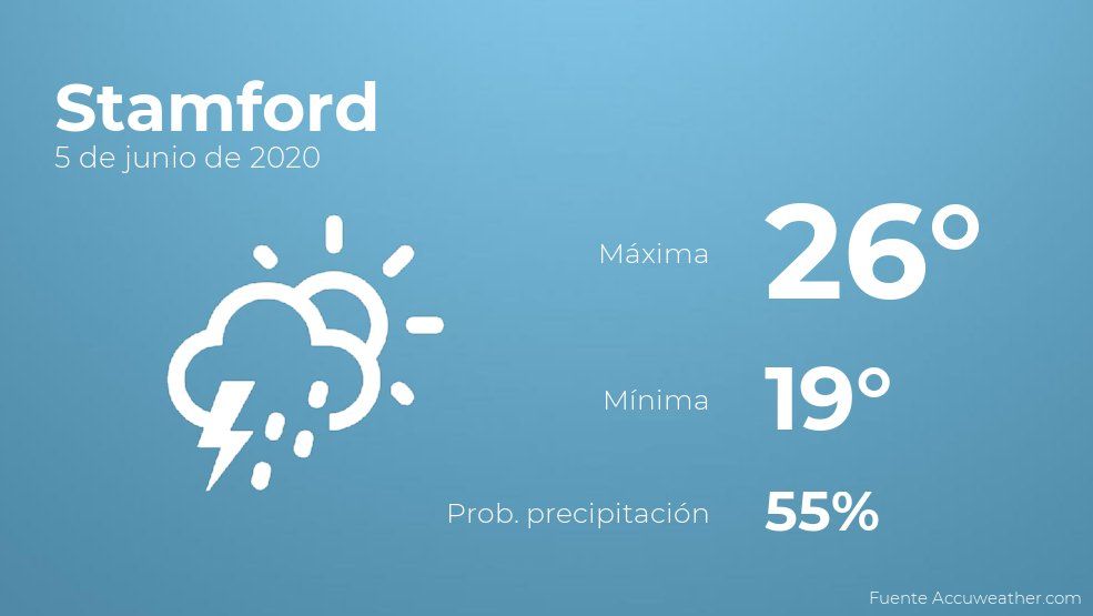 El clima para hoy en Stamford, 5 de junio de 2020