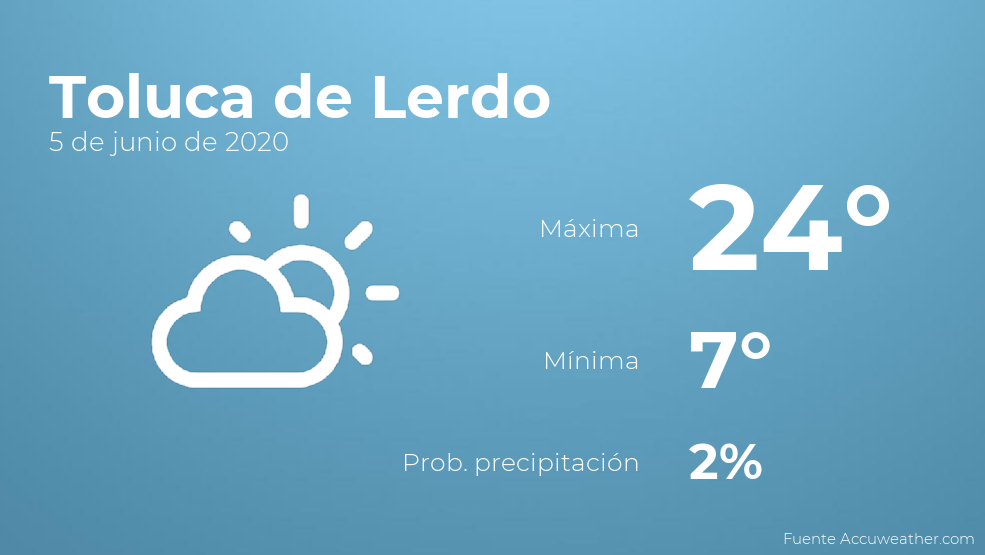 El clima para hoy en Toluca de Lerdo, 5 de junio de 2020
