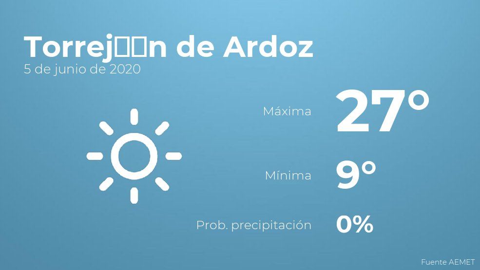 El clima para hoy en Torrejón de Ardoz, 5 de junio de 2020