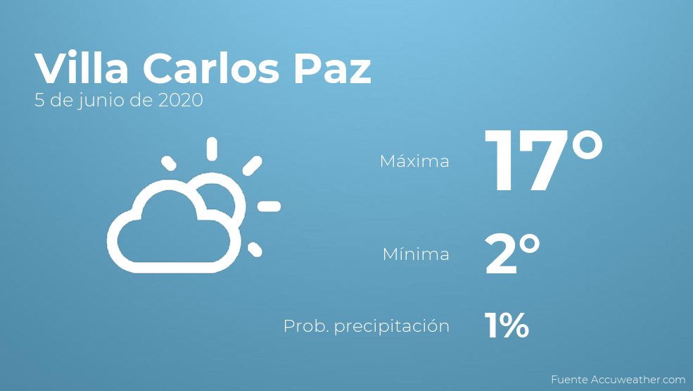 El clima para hoy en Villa Carlos Paz, 5 de junio de 2020