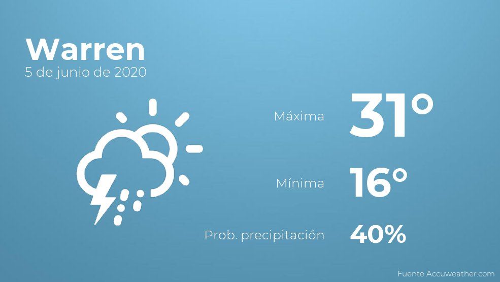 El clima para hoy en Warren, 5 de junio de 2020