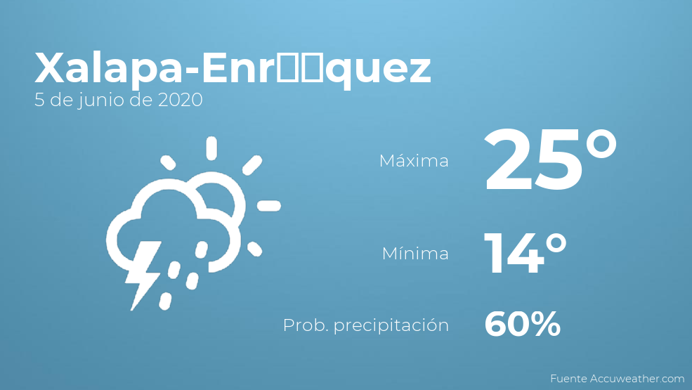 El clima para hoy en Xalapa-Enríquez, 5 de junio de 2020