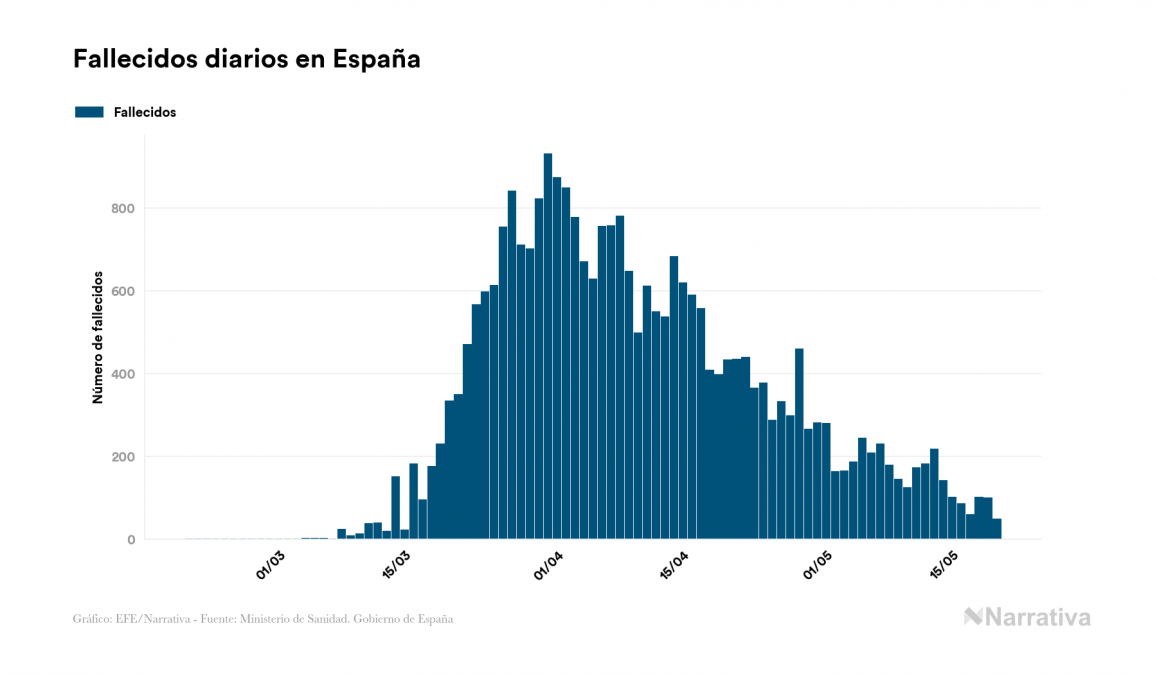 Los últimos datos de la pandemia de la COVID-19 en España revelan 344 casos nuevos y 48 fallecimientos en el último día, según reflejan los últimos datos del Ministerio de Sanidad del 20 de mayo. En total, la cifra acumulada de contagios asciende a los 233.037 infectados en todo el país y 27.940 personas han fallecido desde que surgió el primer caso.