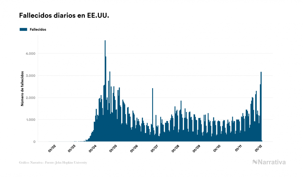 Según los últimos datos, actualmente en EE.UU. hay 8.329.375 casos activos de coronavirus tras confirmarse 3.976 nuevos positivos este jueves. Desde el comienzo de la pandemia, la cifra total de contagiados asciende a 13.925.350, con 5.322.128 recuperados y 273.847 fallecidos.