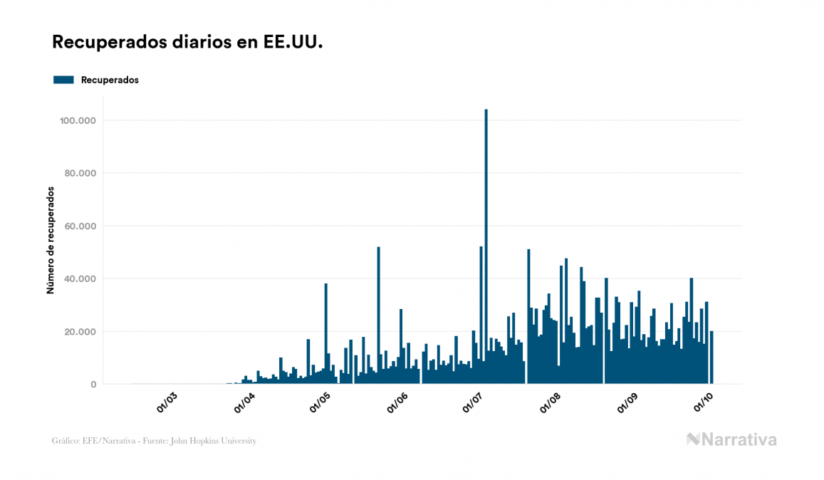 Según los últimos datos, actualmente en EE.UU. hay 4.209.926 casos activos de coronavirus tras confirmarse 4.441 nuevos positivos y 19.903 altas médicas este viernes. Desde el comienzo de la pandemia, el número total de contagiados asciende a 7.278.384, con 2.860.650 recuperados y 207.808 fallecidos.