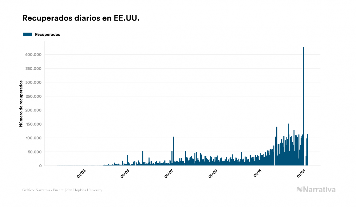 Según los últimos datos, EE.UU. continúa con 12.627.888 casos activos de COVID-19 tras confirmarse 7.706 nuevos positivos y 113.113 altas médicas este viernes. Desde el comienzo de la pandemia, la cifra total de contagiados asciende a 21.581.749, con 8.588.540 recuperados y 365.321 fallecidos.