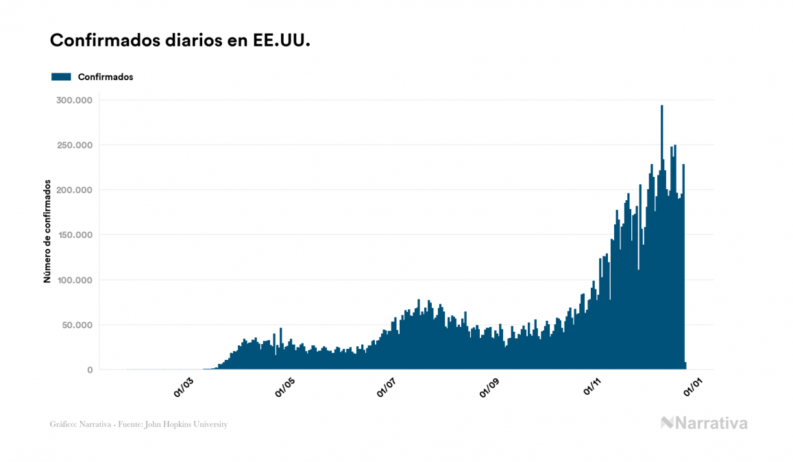 Según los últimos datos, actualmente en EE.UU. hay 10.905.112 casos activos de COVID-19 tras confirmarse 7.854 nuevos positivos y 107.856 altas médicas este jueves. Desde el comienzo de la pandemia, la cifra total de contagiados asciende a 18.466.227, con 7.234.883 recuperados y 326.232 fallecidos.