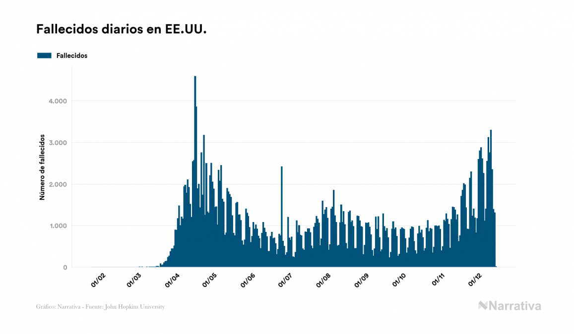 La COVID-19 deja ya 16.519.628 casos de contagio en EE.UU., con 9.819.603 de ellos actualmente activos, 300.494 fallecidos y 166 nuevos positivos, según los últimos datos correspondientes al 15 de diciembre. Además, desde el primer caso se han recuperado 6.399.531 personas.
