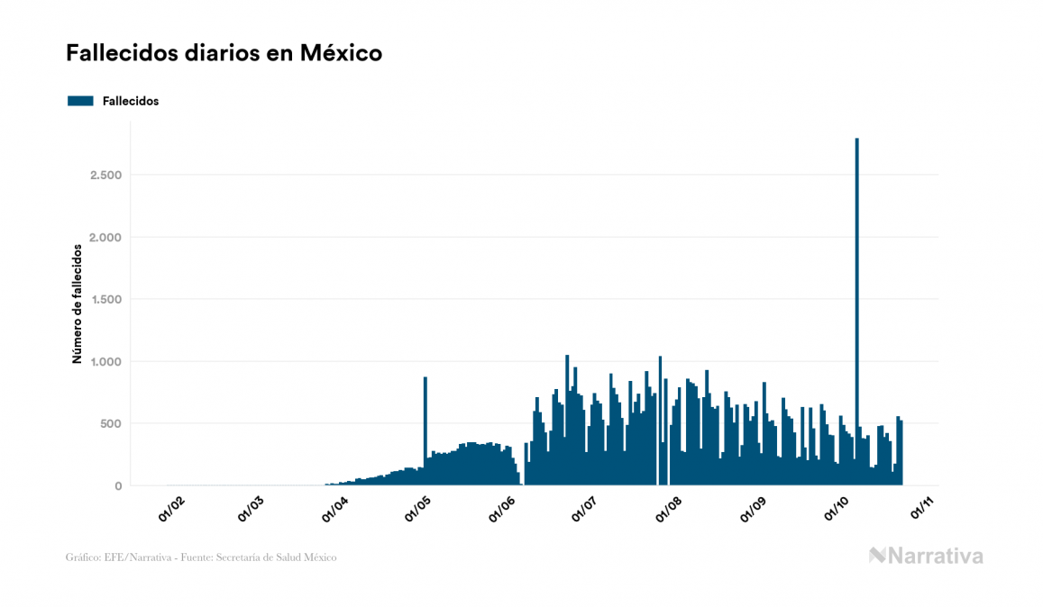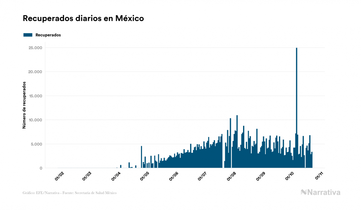 Según los últimos datos, actualmente en México hay 46.247 casos activos de COVID-19 tras confirmarse 6.845 nuevos positivos y 3.303 altas médicas este jueves. Desde el comienzo de la pandemia, la cifra total de contagiados asciende a 867.559, con 733.897 recuperados y 87.415 fallecidos.