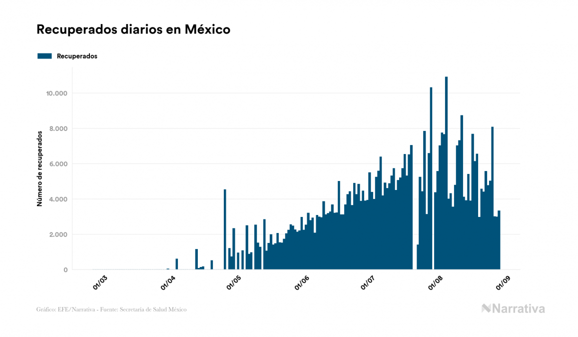 Según los últimos datos, México continúa con 41.788 casos activos de COVID-19 tras confirmarse 6.026 nuevos positivos y 3.335 altas médicas este viernes. Desde el comienzo de la pandemia, el número total de contagiados asciende a 579.914, con 475.532 recuperados y 62.594 fallecidos.