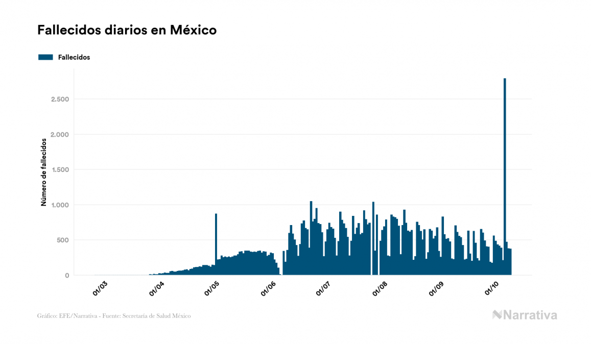 Según los últimos datos, actualmente en México hay 38.788 casos activos de COVID-19 tras confirmarse 5.300 nuevos positivos y 2.911 altas médicas este viernes. Desde el comienzo de la pandemia, el número total de contagiados asciende a 804.488, con 682.604 recuperados y 83.096 fallecidos.