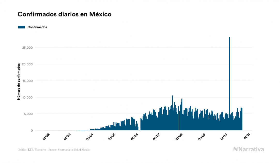 Según los últimos datos, actualmente en México hay 49.319 casos activos de coronavirus tras confirmarse 6.612 nuevos positivos y 3.540 altas médicas este viernes. Desde el comienzo de la pandemia, el número total de contagiados asciende a 874.171, con 737.437 recuperados y 87.415 fallecidos.