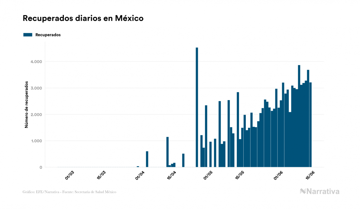 Según los últimos datos, actualmente en México hay 21.740 casos activos de COVID-19 tras confirmarse 3.494 nuevos positivos y 3.202 altas médicas este domingo. Desde el comienzo de la pandemia, la cifra total de contagiados asciende a 142.690, con 104.078 recuperados y 16.872 fallecidos.