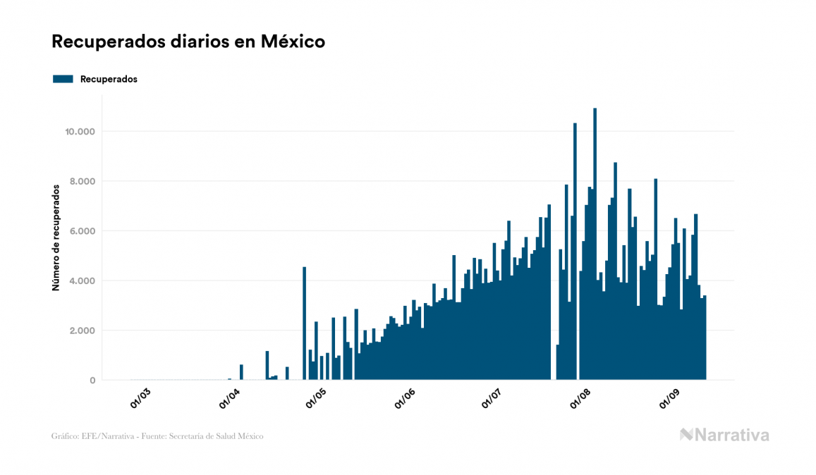 Según los últimos datos, México continúa con 40.911 casos activos de COVID-19 tras confirmarse 4.857 nuevos positivos y 3.387 altas médicas este viernes. Desde el comienzo de la pandemia, el número total de contagiados asciende a 652.364, con 541.804 recuperados y 69.649 fallecidos.