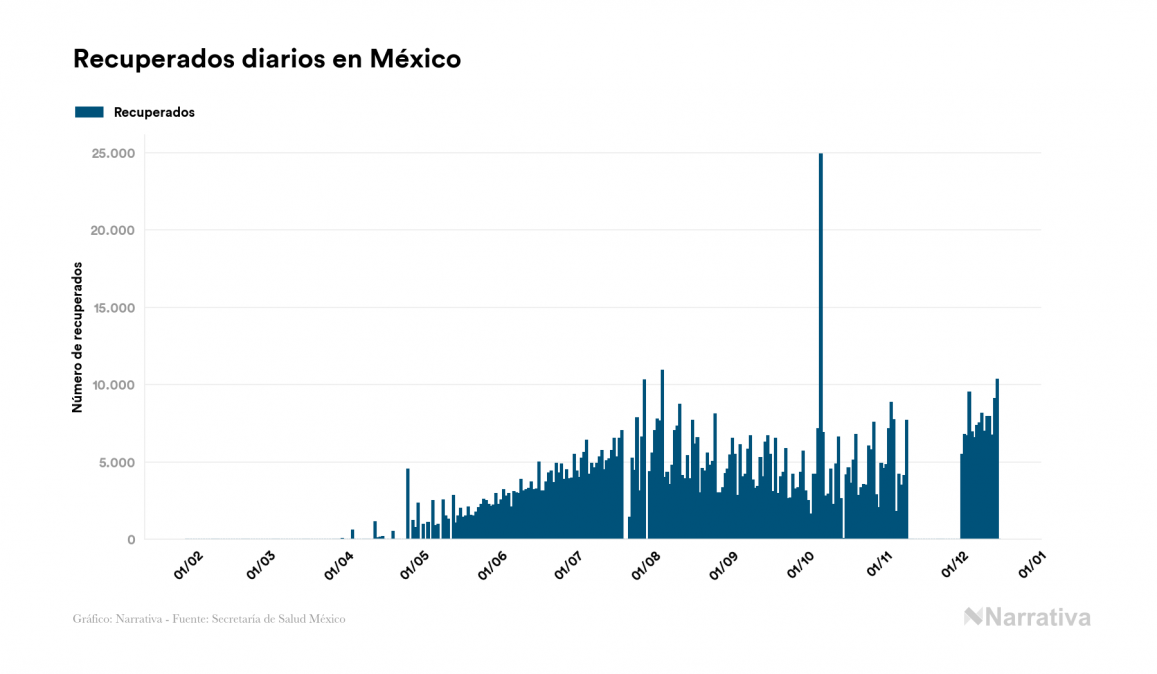 El nuevo coronavirus deja ya 1.267.202 casos de contagio en México, con 214.014 de ellos actualmente activos y 115.099 fallecidos, según los últimos datos correspondientes al 16 de diciembre. Además, un total de 938.089 personas ya se ha recuperado desde que se produjo el primer contagio en el país.