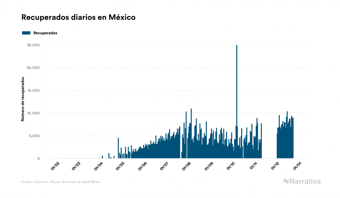 El coronavirus deja ya 1.350.079 casos de contagio en México, con 224.520 de ellos actualmente activos y 120.311 fallecidos, según los últimos datos correspondientes al 24 de diciembre. Además, un total de 1.005.248 personas ya se ha recuperado desde que se produjo el primer contagio en el país.