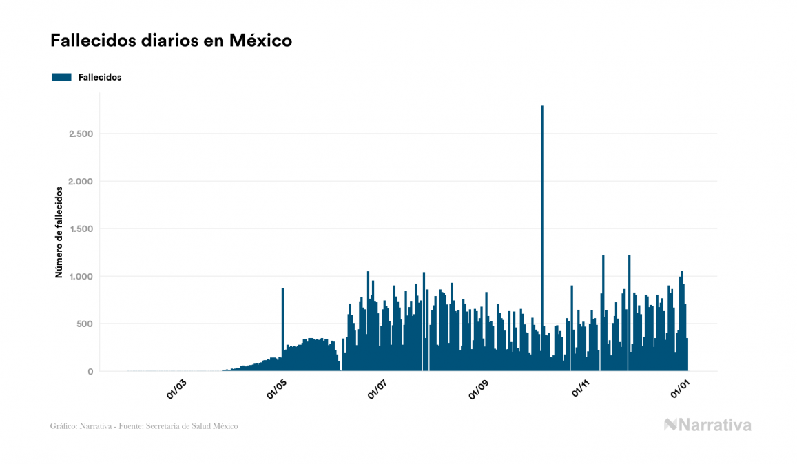 El coronavirus deja ya 1.443.544 casos de contagio en México, con 225.788 de ellos actualmente activos y 126.851 fallecidos, según los últimos datos correspondientes al 3 de enero. Además, un total de 1.090.905 personas ya se ha recuperado desde que se produjo el primer contagio en el país.