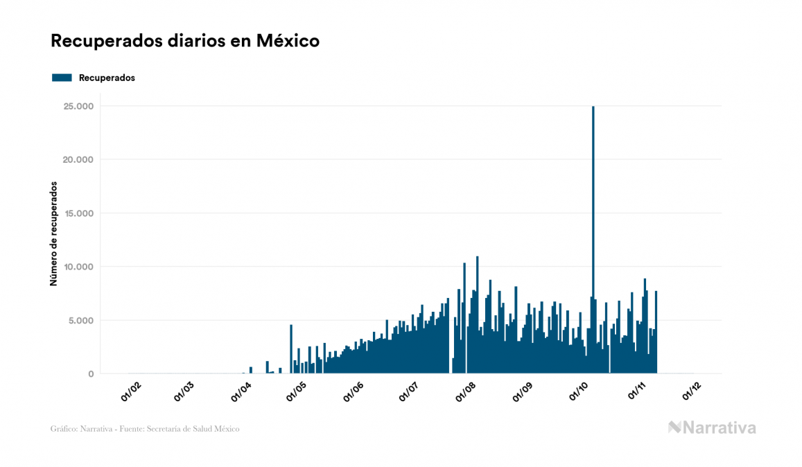 El coronavirus deja ya 1.101.403 casos de contagio en México, con 182.690 de ellos actualmente activos y 105.459 fallecidos, según los últimos datos correspondientes al 29 de noviembre. Además, un total de 813.254 personas ya se ha recuperado, tras sumarse 9.673 en el último informe.