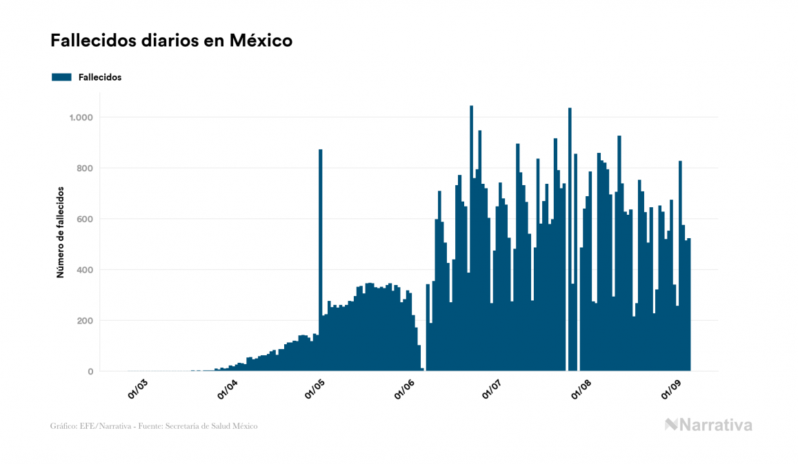 México registra 66.851 muertes por COVID-19, 522 más que en el último día
