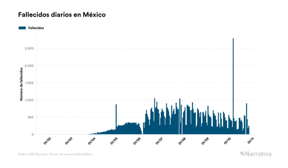 Según los últimos datos, México continúa con 45.896 casos activos de COVID-19 tras confirmarse 4.166 nuevos positivos y 7.568 altas médicas este martes. Desde el comienzo de la pandemia, la cifra total de contagiados asciende a 895.326, con 760.259 recuperados y 89.171 fallecidos.