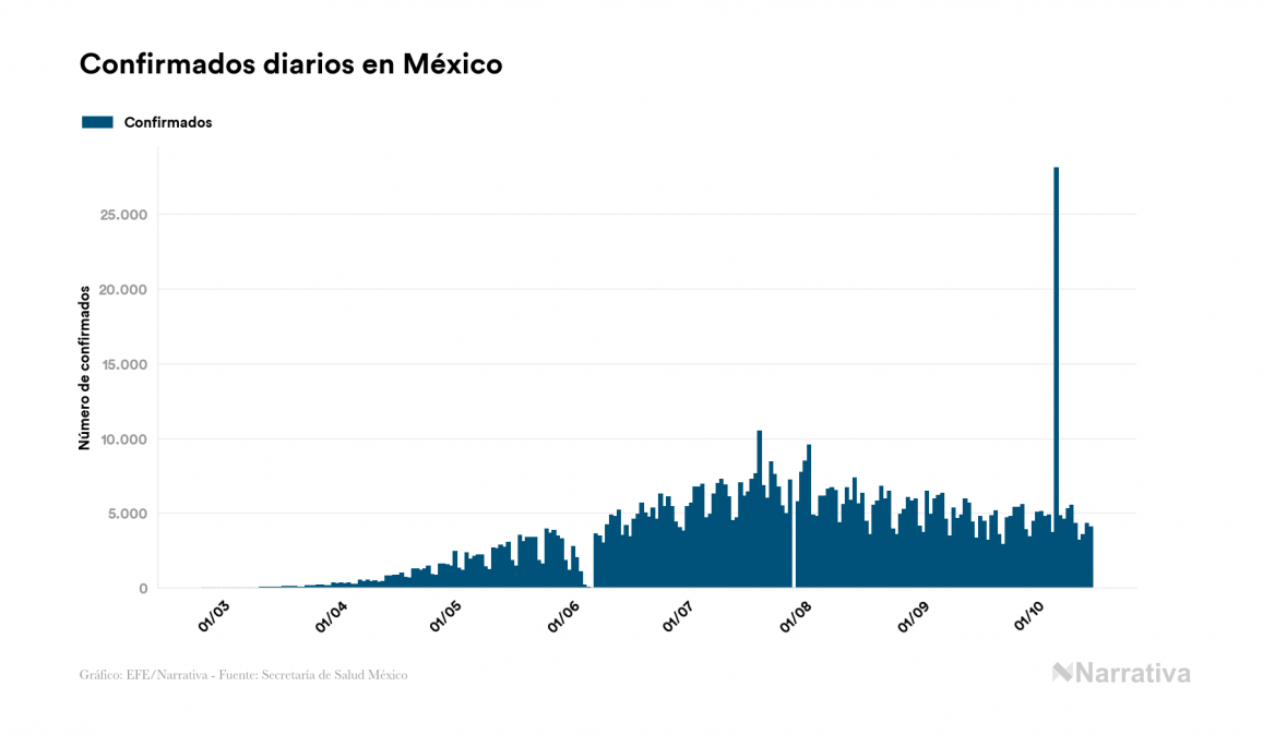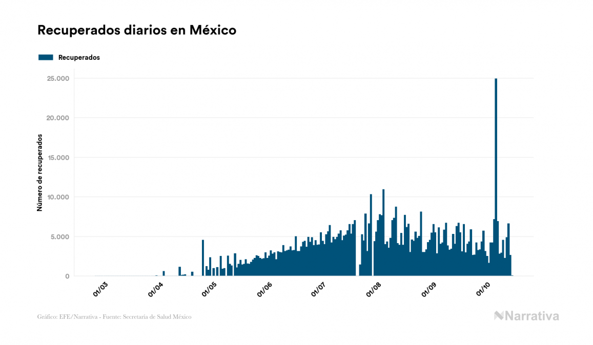 Según los últimos datos, actualmente en México hay 41.009 casos activos de COVID-19 tras confirmarse 4.056 nuevos positivos y 32 altas médicas este jueves. Desde el comienzo de la pandemia, la cifra total de contagiados asciende a 829.396, con 703.489 recuperados y 84.898 fallecidos.