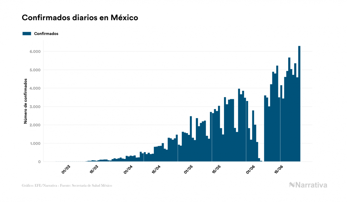 Según los últimos datos, México continúa con 24.387 casos activos de COVID-19 tras confirmarse 6.288 nuevos positivos y 4.263 altas médicas este miércoles. Desde el comienzo de la pandemia, el número total de contagiados asciende a 191.410, con 143.646 recuperados y 23.377 fallecidos.