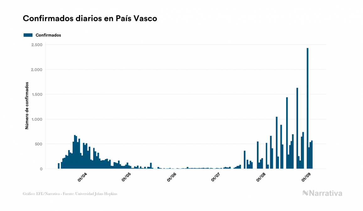 El número de casos confirmados de contagio por COVID-19 alcanza ya las 26.232.543 personas en todo el mundo, de las cuales 17.380.680 ya se han recuperado. EE.UU. concentra el mayor número de casos con 6.150.999, seguido de Brasil, India y Rusia con 4.041.638, 3.936.747 y 1.011.987 casos cada uno.