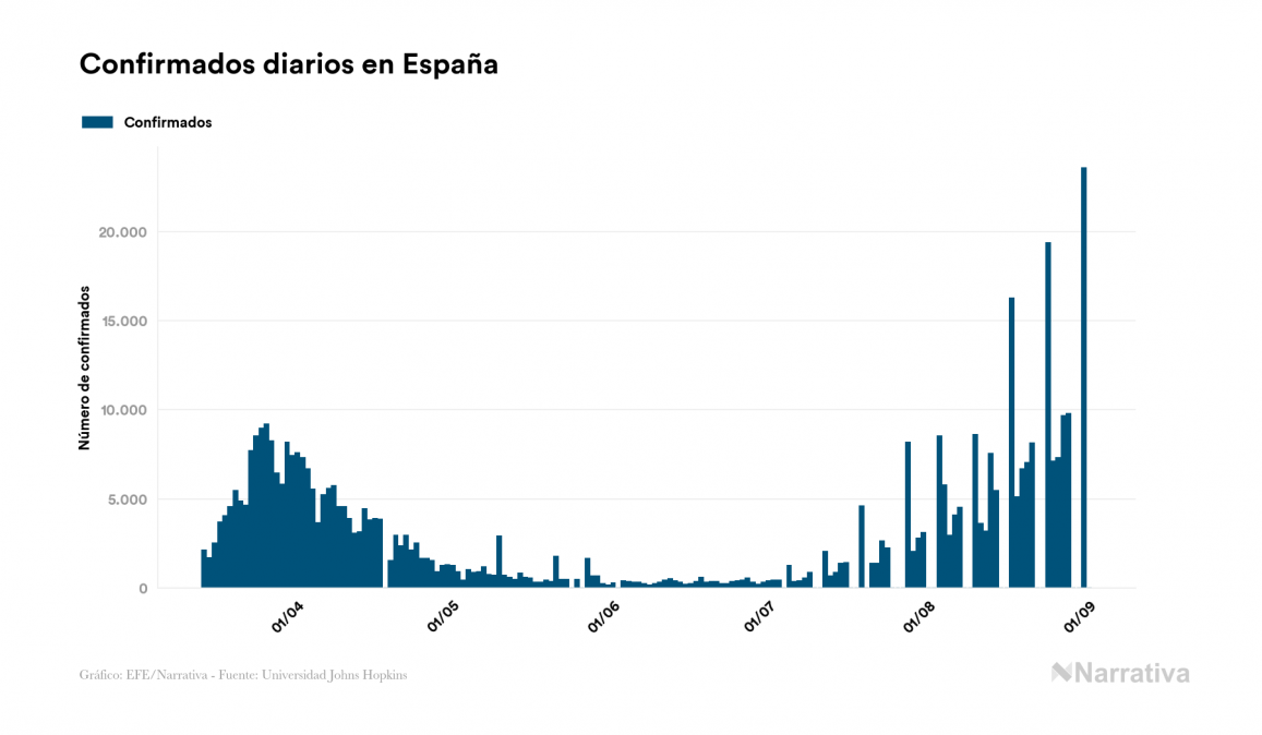 La cifra de casos por contagio por COVID-19 alcanza ya las 25.412.200 personas a nivel mundial, de las cuales 16.679.514 ya se han recuperado. EE.UU. concentra el mayor número de casos con 6.031.065, seguido de Brasil, India y Rusia con 3.908.272, 3.691.166 y 997.072 casos respectivamente.