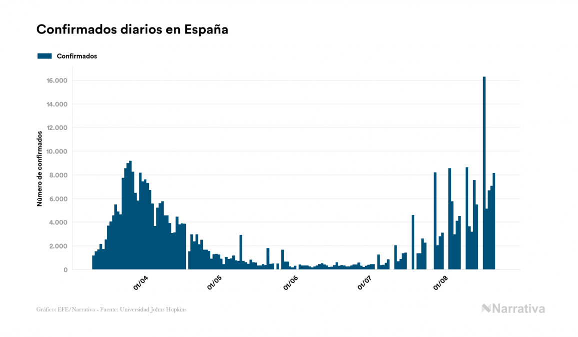 El número de casos confirmados de contagio por COVID-19 alcanza ya las 23.135.820 personas en todo el mundo, de las cuales ya se han recuperado 14.787.650. EE.UU. concentra el mayor número de casos con 5.668.245, seguido de Brasil, India y Rusia con 3.582.362, 3.044.940 y 954.328 casos cada uno.
