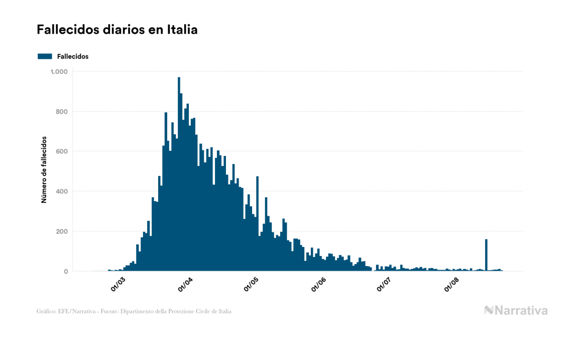 Desde su aparición, el balance global de fallecidos por coronavirus a nivel mundial es de 793.063 personas, tras sumarse 2.000 nuevas muertes en el último informe. EE.UU. es el país con mayor número de víctimas hasta el momento con 176.362 personas fallecidas, seguido de Brasil, México e India con 114.250, 60.254 y 56.706 fallecimientos respectivamente.