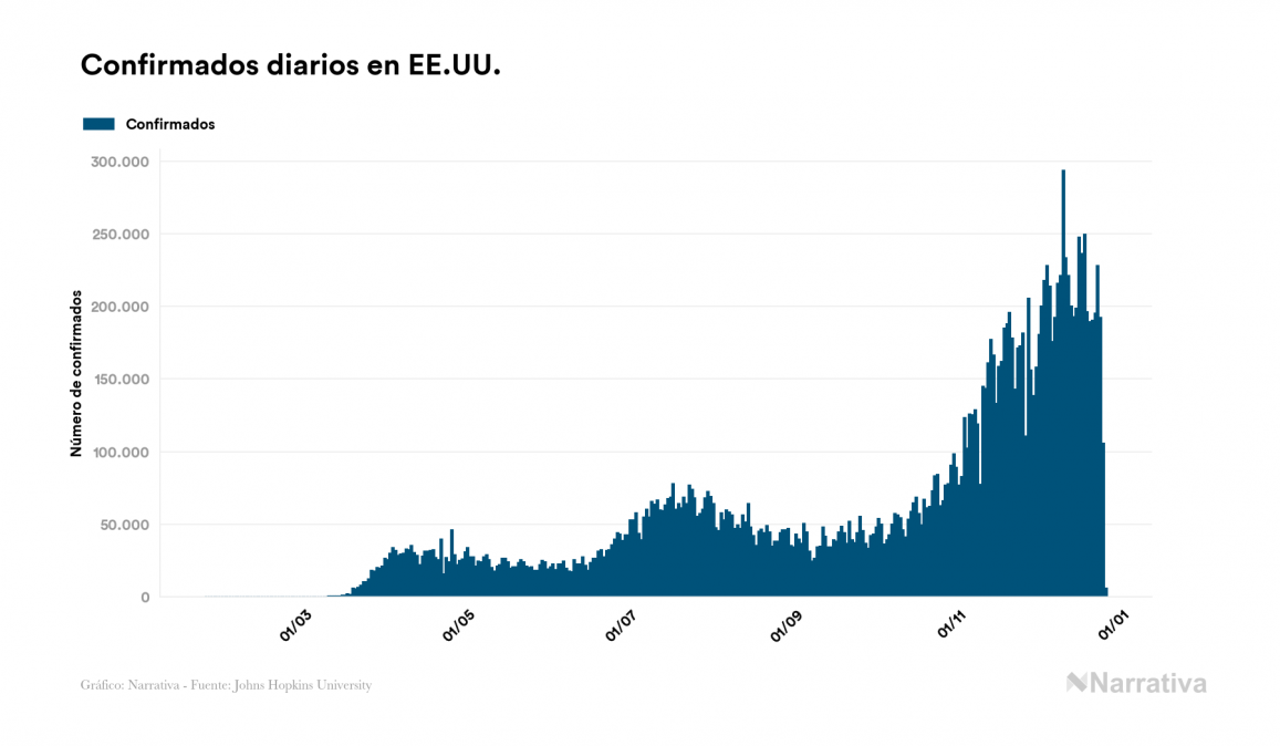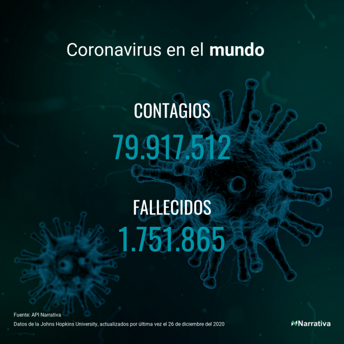 La cifra de casos por contagio por COVID-19 alcanza ya las 79.917.512 personas a nivel mundial, de las cuales ya se han recuperado 52.341.622. EE.UU. concentra el mayor número de casos con 18.762.383, seguido de India, Brasil y Rusia con 10.169.118, 7.448.560 y 2.992.123 casos respectivamente.