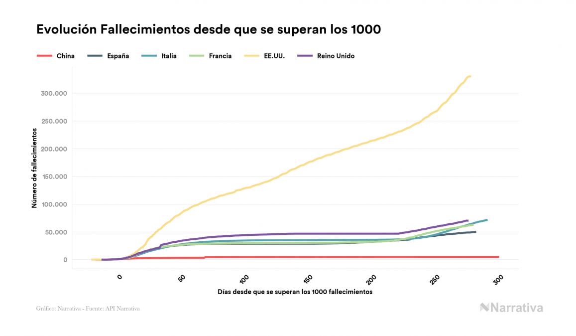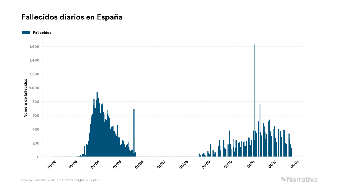 En total, el balance global de fallecidos por coronavirus a nivel mundial es de 1.751.865 personas, tras sumarse 2.418 nuevas muertes en el último recuento. EE.UU. es el país que ha registrado una mayor cantidad hasta el momento con 330.279 personas fallecidas, seguido de Brasil, India y México con 190.488, 147.343 y 121.837 fallecimientos respectivamente.