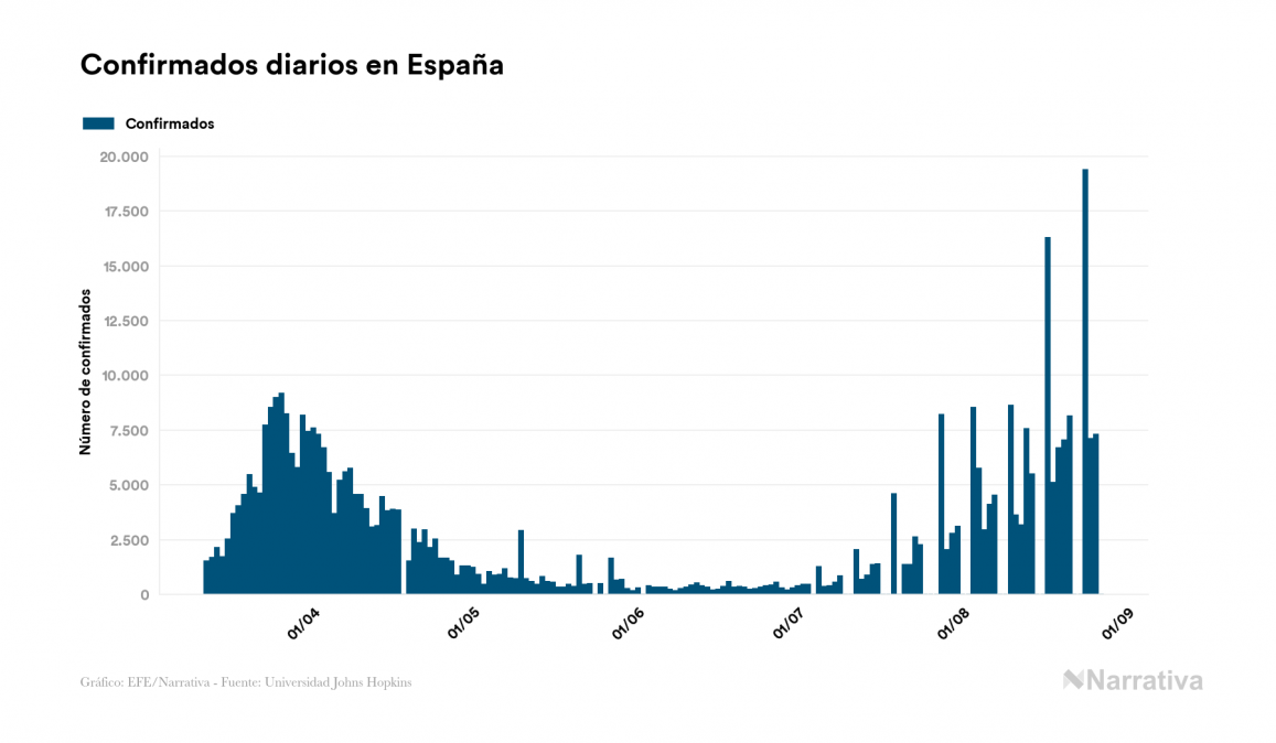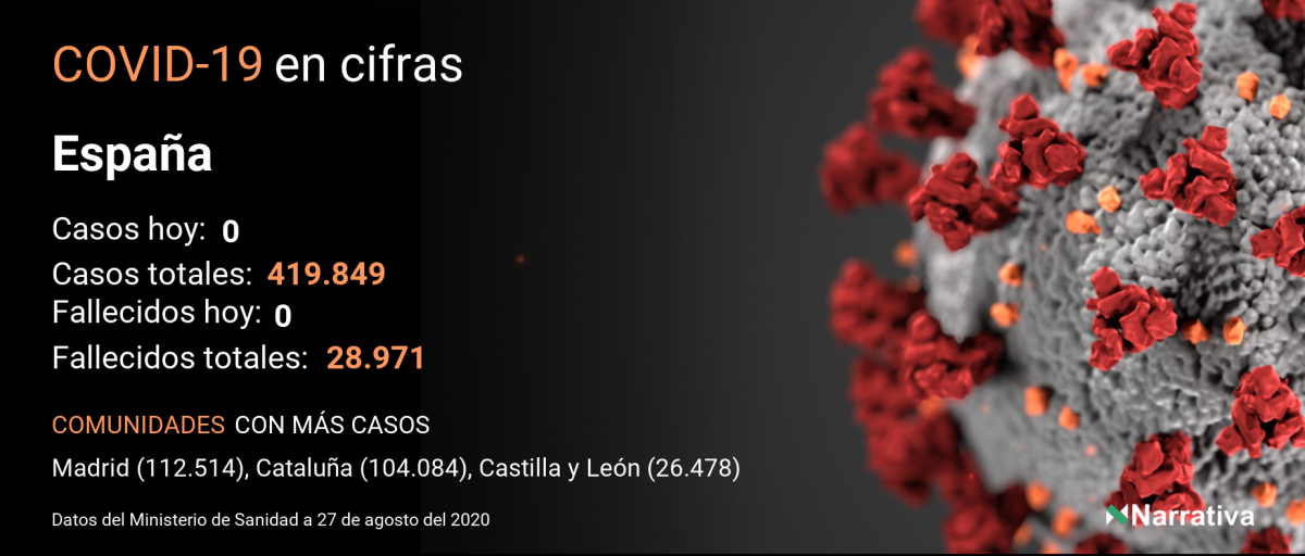 La cifra de casos por contagio por COVID-19 alcanza ya las 24.109.482 personas a nivel mundial, de las cuales 15.664.106 ya se han recuperado. EE.UU. concentra el mayor número de casos con 5.822.934, seguido de Brasil, India y Rusia con 3.717.156, 3.310.234 y 972.972 casos respectivamente.