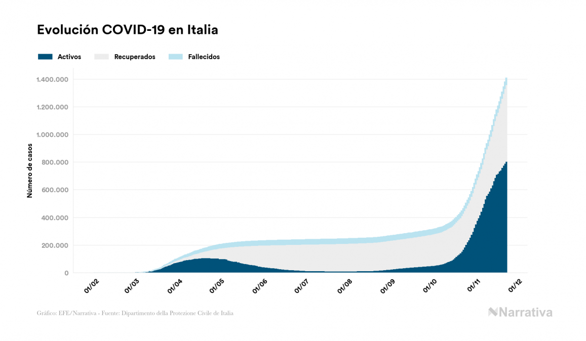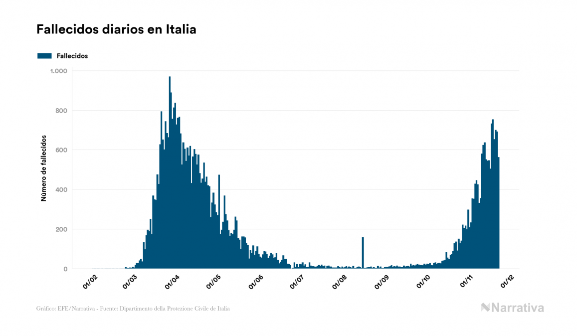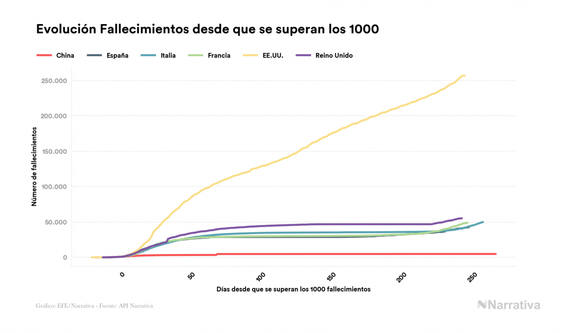 Desde su aparición, el número de fallecidos a nivel mundial se sitúa actualmente en 1.389.244 personas, a las que se suman 2.703 desde el último informe. EE.UU. es el país con mayor número de víctimas hasta el momento con 256.798 muertes, seguido de Brasil, India y México con 169.183, 133.738 y 101.676 fallecimientos respectivamente.