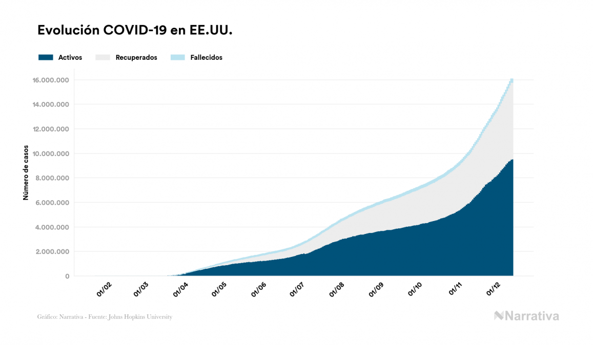 La cifra de casos por contagio por COVID-19 alcanza ya las 71.792.761 personas en todo el mundo, de las cuales ya se han recuperado 46.845.310. EE.UU. concentra el mayor número de casos con 16.067.031, seguido de India, Brasil y Rusia con 9.857.029, 6.880.127 y 2.629.699 casos respectivamente.