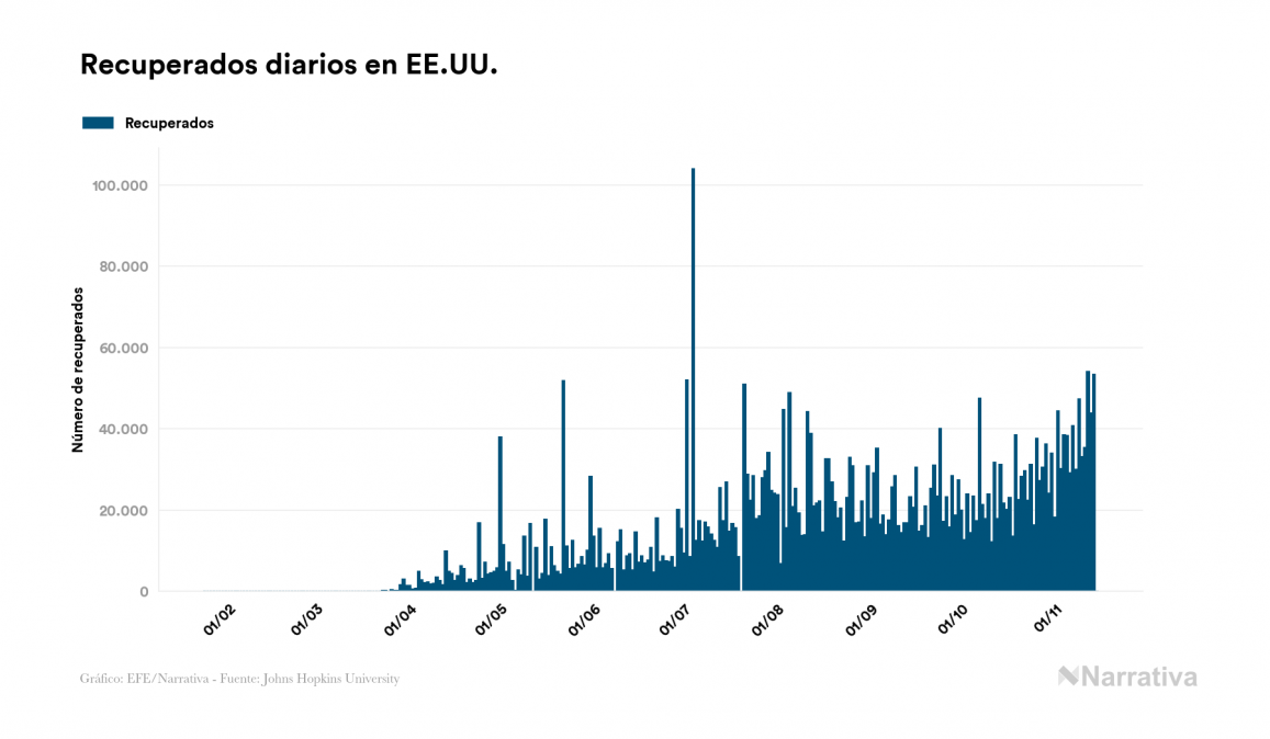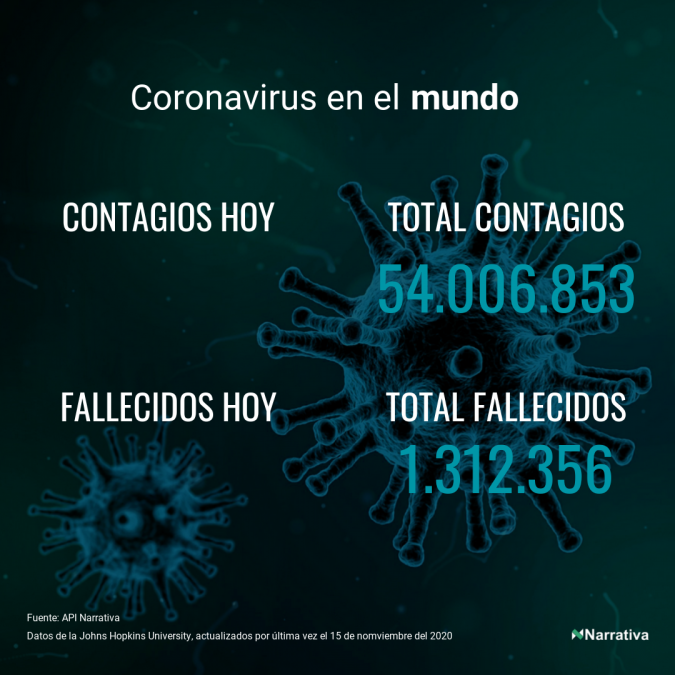 El número de casos confirmados de contagio por COVID-19 alcanza ya las 54.006.853 personas a nivel mundial, de las cuales 34.689.591 ya se han recuperado. EE.UU. concentra el mayor número de casos con 10.905.598, seguido de India, Brasil y Francia con 8.814.579, 5.848.959 y 1.915.713 casos respectivamente.