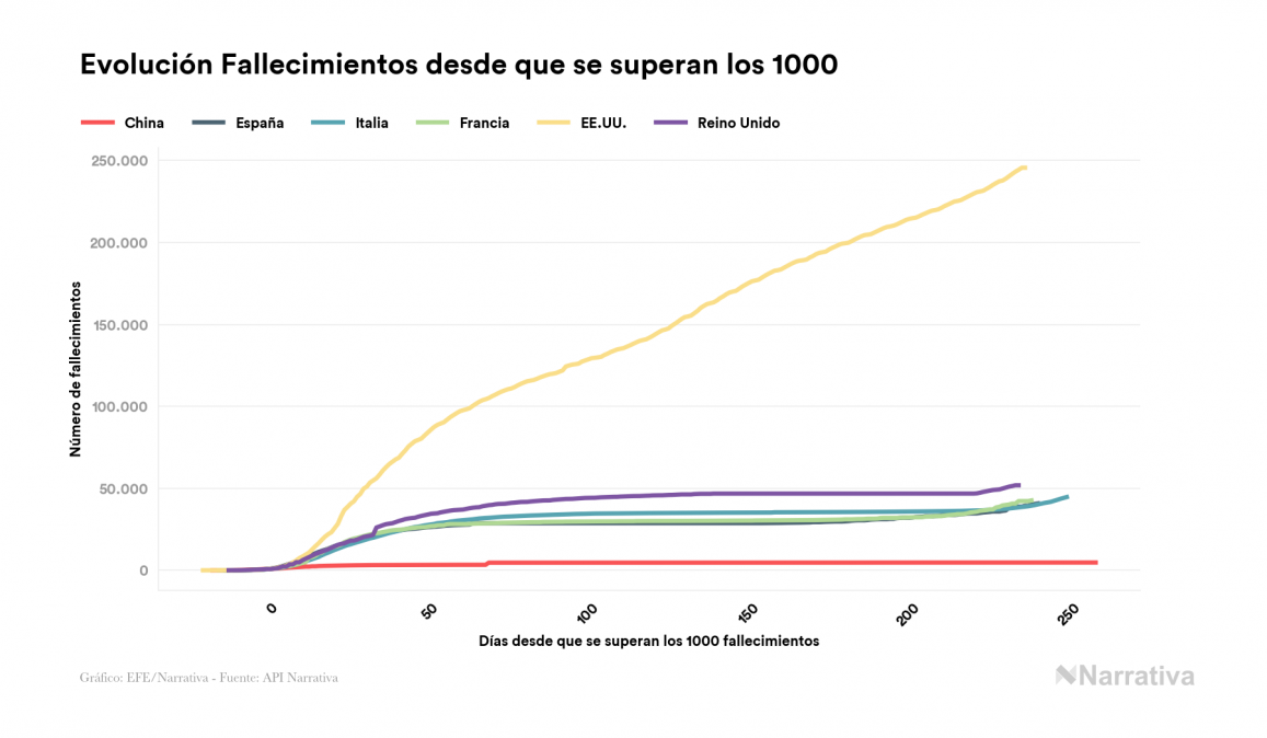 En total, el número de fallecidos a nivel mundial se sitúa actualmente en 1.312.356 personas, a las que se han sumado 3.357 desde el último informe. EE.UU. es el país con mayor número de víctimas hasta el momento con 245.614 personas fallecidas, seguido de Brasil, India y México con 165.658, 129.635 y 98.259 fallecimientos respectivamente.