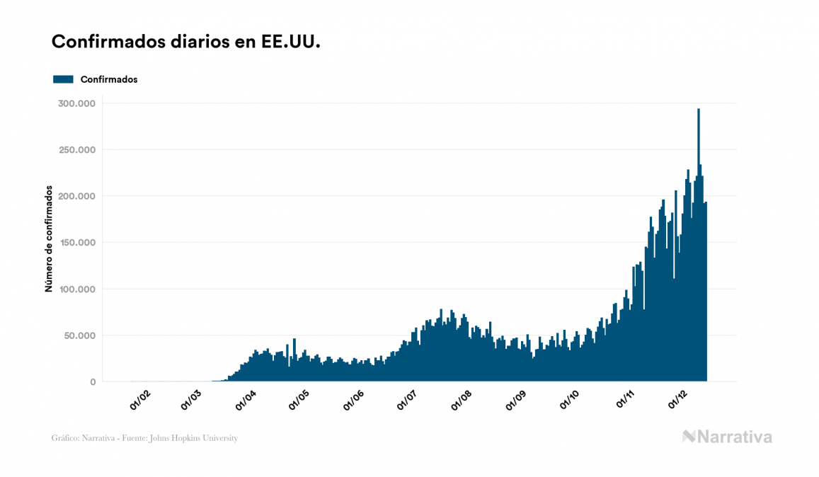 La cifra de casos por contagio por COVID-19 alcanza ya las 72.926.804 personas en todo el mundo, de las cuales 47.649.284 ya se han recuperado. EE.UU. concentra el mayor número de casos con 16.519.628, seguido de India, Brasil y Rusia con 9.906.165, 6.927.145 y 2.682.866 casos respectivamente.