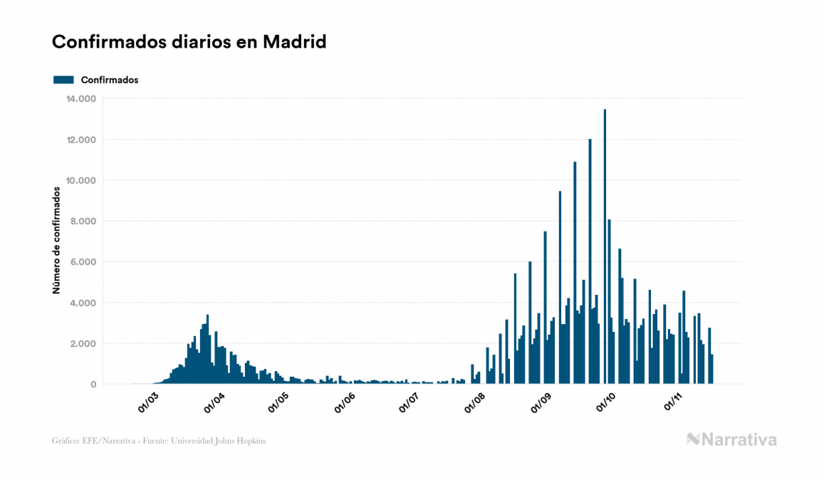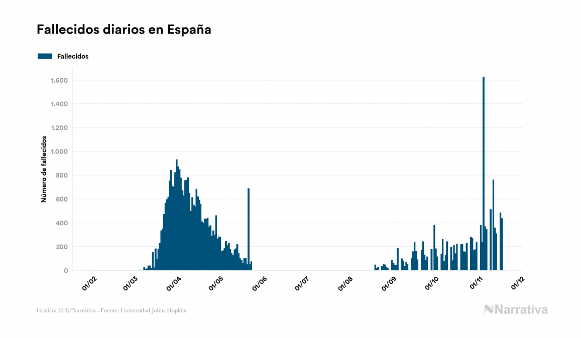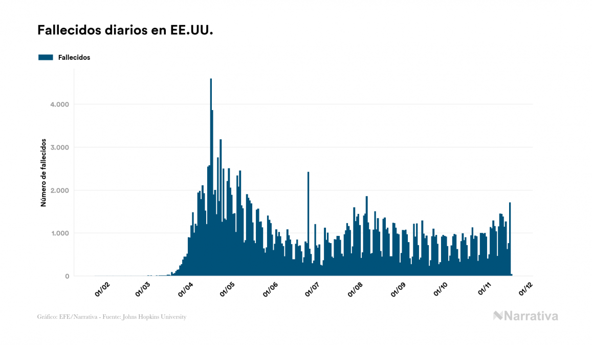 En total, el número de fallecidos a nivel mundial se sitúa actualmente en 1.339.820 personas, a las que se suman 4.018 desde el último informe. EE.UU. es el país que ha registrado una mayor cantidad hasta el momento con 248.707 muertes, seguido de Brasil, India y México con 166.699, 130.993 y 99.026 fallecimientos respectivamente.