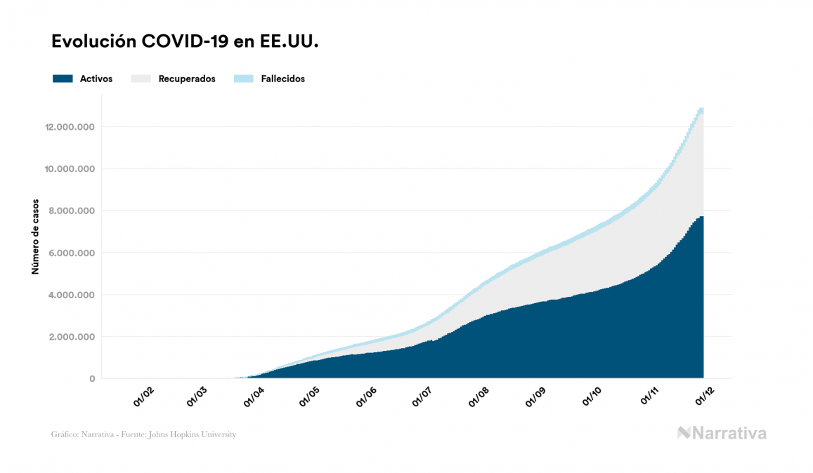 El número de casos confirmados de contagio por COVID-19 alcanza ya las 61.064.880 personas a nivel mundial, de las cuales 39.059.506 ya se han recuperado. EE.UU. concentra el mayor número de casos con 12.885.299, seguido de India, Brasil y Francia con 9.309.787, 6.204.220 y 2.235.537 casos respectivamente.