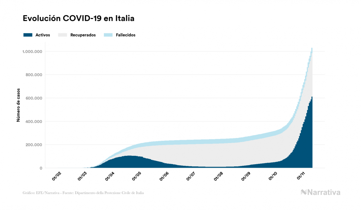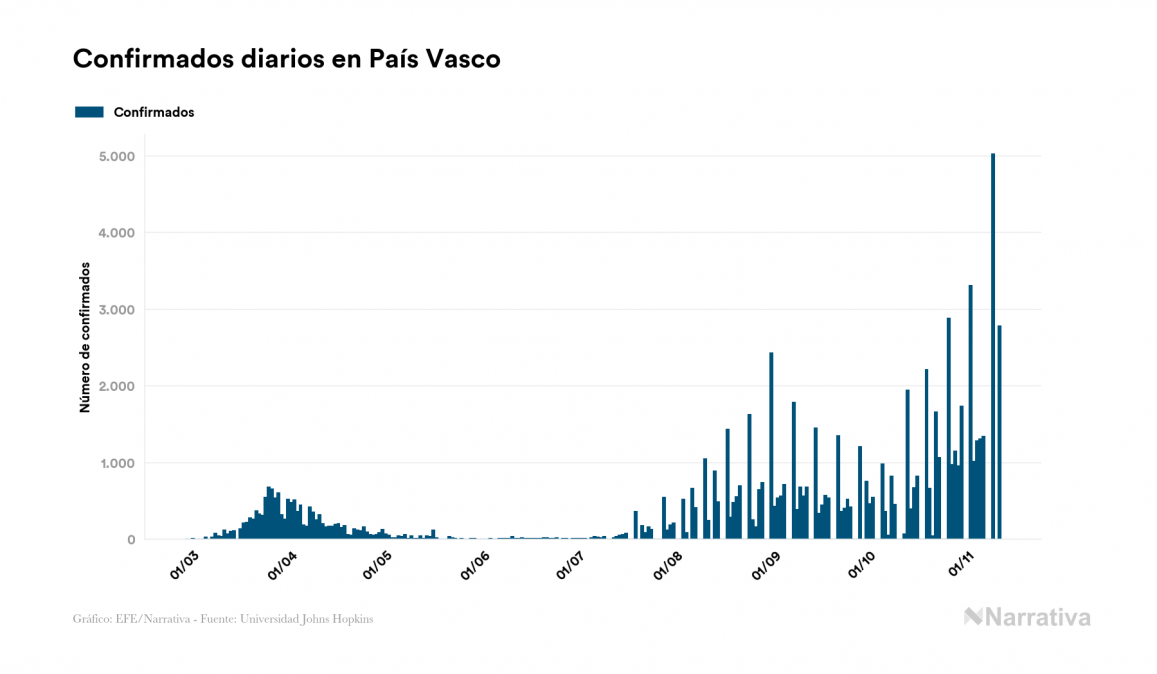 En total, el número de fallecidos a nivel mundial se sitúa actualmente en 1.285.709 personas, a las que se han sumado 4.214 desde el último informe. EE.UU. es el país que ha registrado una mayor cantidad hasta el momento con 241.808 muertes, seguido de Brasil, India y México con 163.368, 128.121 y 96.430 fallecimientos respectivamente.